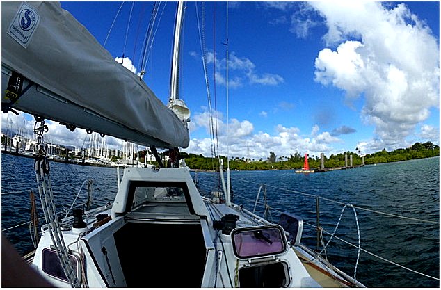Od 21 do 25 dnia rejsu, bez zmian. 474 mile (3,95 wezla srednia szybkosc). A jednak! Dwa spotkania na oceanie. Okolo 400 mil od Martyniki. Dzwoni AIS. Na ekranie statek. Czytam informacje «okret wojenny FR» Nie plynie na kolizje. Przejdzie o mile z lewej burty. Plynie powoli. Szary kadlub dobrze widoczny. Przechodzi obok, zawraca i z powrotem mija mnie z lewej burty zeby zniknac pod burzowa chmura. Nikogo na pokladzie nie widzialem. Szkoda. To ci marynarka- wojenna! Drugie spotkanie! Tym razem zagiel na horyzoncie a AIS nic. Jest daleko. On na polnocny zachod ja na poludniowy zachod. Bedziemy sie mijac. Przez lornetka fajnie widac duzy jacht. Zadzwonil AIS. Dobrze ze w koncu wlaczyli .Moj na okraglo dziala. No i problem idziemy na kolizje. Biore ster w reke. Mijamy sie o jakies 100m. Atlantyk przeplynac samotnie i tuz przed celem sie mijac z zaglowka ktora tez przez ocean... Kiwamy do siebie radosnie. Ma zaloge. To 50 stopowa stara regatowka. Rasowy kadlub idzie szybko i znika za horyzontem. Do brzegu blisko! Pare dni. Moze 3! Mieszane uczucia. Napewno sie uda. Albo jeszcze COS...? sie przytrafi i...