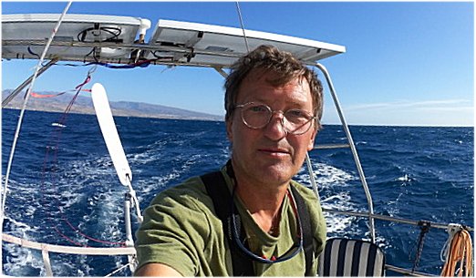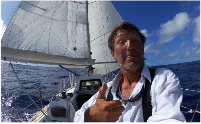 Pewnego razu jak zwykle obserwuje zagle i widze nieznanego faceta. Wlazl na maszt. Trzyma sie topu. Co ty tam robisz przyjacielu?! Zniknal. Szkoda znow nie ma z kim pogadac. Latajace ryby laduja na pokladzie. Z nimi tez nie mam wspolnego jezyka. Klopot bo sa delikatne i zostawiaja po sobie niebieskie blyszczace luski. Na niebie kraza fragaty i faetony. Piekne tropikalne ptaki. Raz mialem wizyte 4 mahi-mahi (koryfena). Plynely przed dziobem. Delfiny pokazaly sie na poczatku podrozy i zniknely.