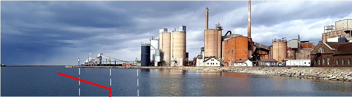Rozpoznanie portu Degerhamn w panoramie brzegu za dnia nie sprawi najmniejszych trudności czy wątpliwości ponieważ na Olandzie nie ma żadnych innych fabryk i to z silosami, 3 generatorami wiatrowymi oraz kominami.