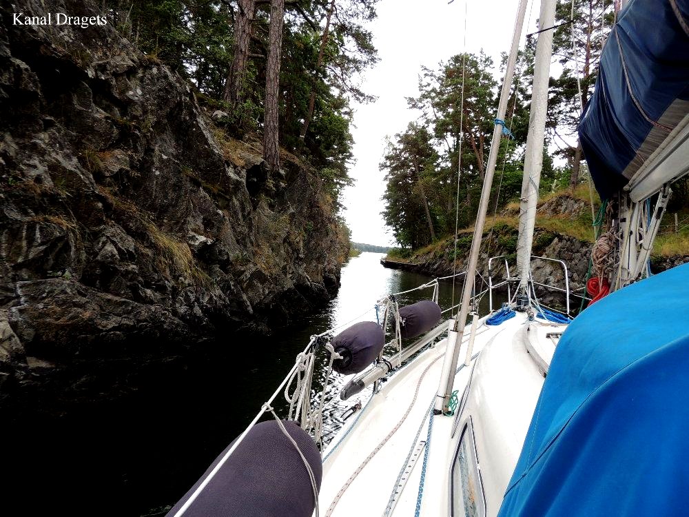 Następnego dnia trzydziestomilowy przeskok w okolice Nynashamn. Naszym celem był urokliwy Kanał Dragets. Jest to wąziutkie przejście, o długości dwóch kabli, między wysokimi skałami. Głębokość nie za duża. W najpłytszym miejscu sonda alarmowała o 1.9 m. Przenocowaliśmy w pobliskiej zatoce a w niedzielę wyruszyliśmy w drogę powrotną. Przed odcumowaniem, przeglądając AIS Vessel Traffic and Positions, zobaczyłem, że „Bury Kocur” jest w linii prostej tylko 17 mil na północ od nas! Zadzwoniłem do Włodka, ale nie mogliśmy się spotkać, gdyż my musieliśmy już startować na południe a oni chcieli ruszyć dopiero w poniedziałek.
