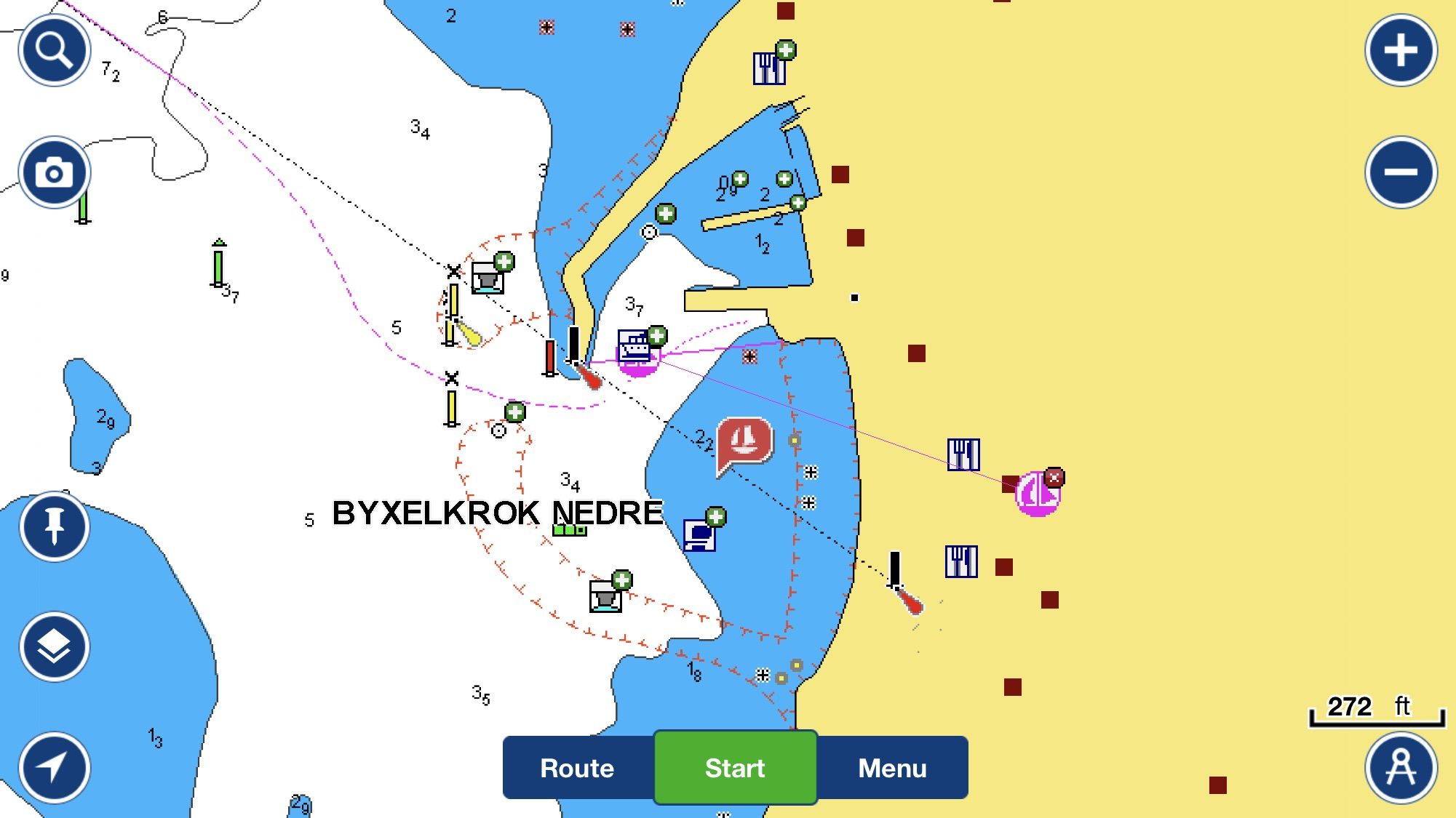 Mapy papierowe mogą się wydać nieco bardziej praktyczne przy planowaniu trasy, bo zwykle obejmują większy obszar na jednej karcie niż mały ekran “telewizorka”. Jednak to też nie do końca jest prawda: można użyć chart viewera w komputerze i tam już widać dużo lepiej.