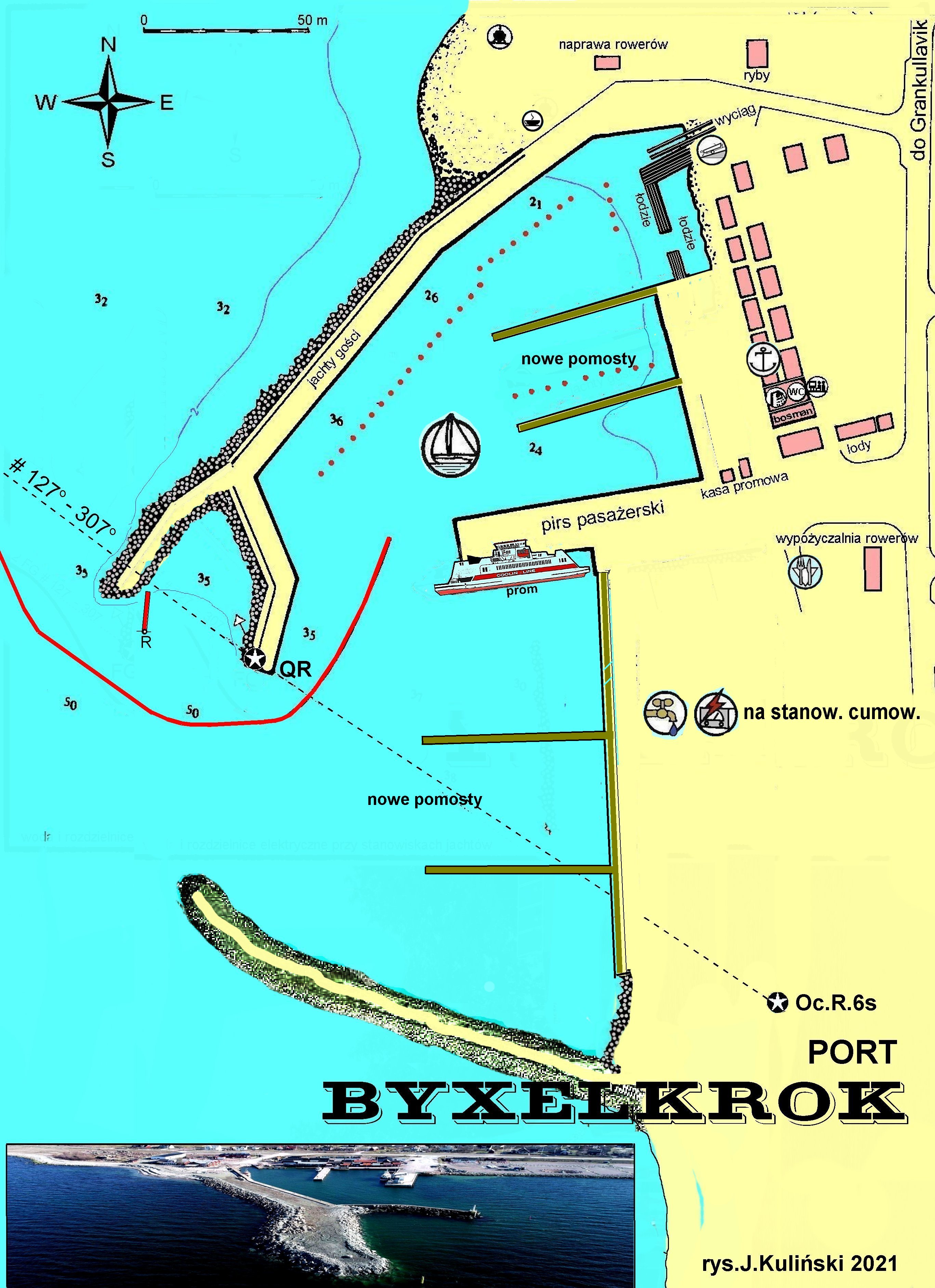 I tu, niemal na koniec, sam sobie częściowo zaprzeczę: otóż Twój przewodnik jest w Kalmarsundzie najaktualniejszy. Port Byxelkrok tylko u Ciebie jest rozrysowany tak, jak wygląda w rzeczywistości. C-map (aktualny!) w ogóle nie rejestruje rozbudowy o część południową, w tym nowe pirsy dla jachtów. Navionics zaś (też zaktualizowany), zauważa jedynie plan rozbudowy o falochron południowy, ale obrazuje go tak, jako “works in progress”. A jest już rzeczywistością.