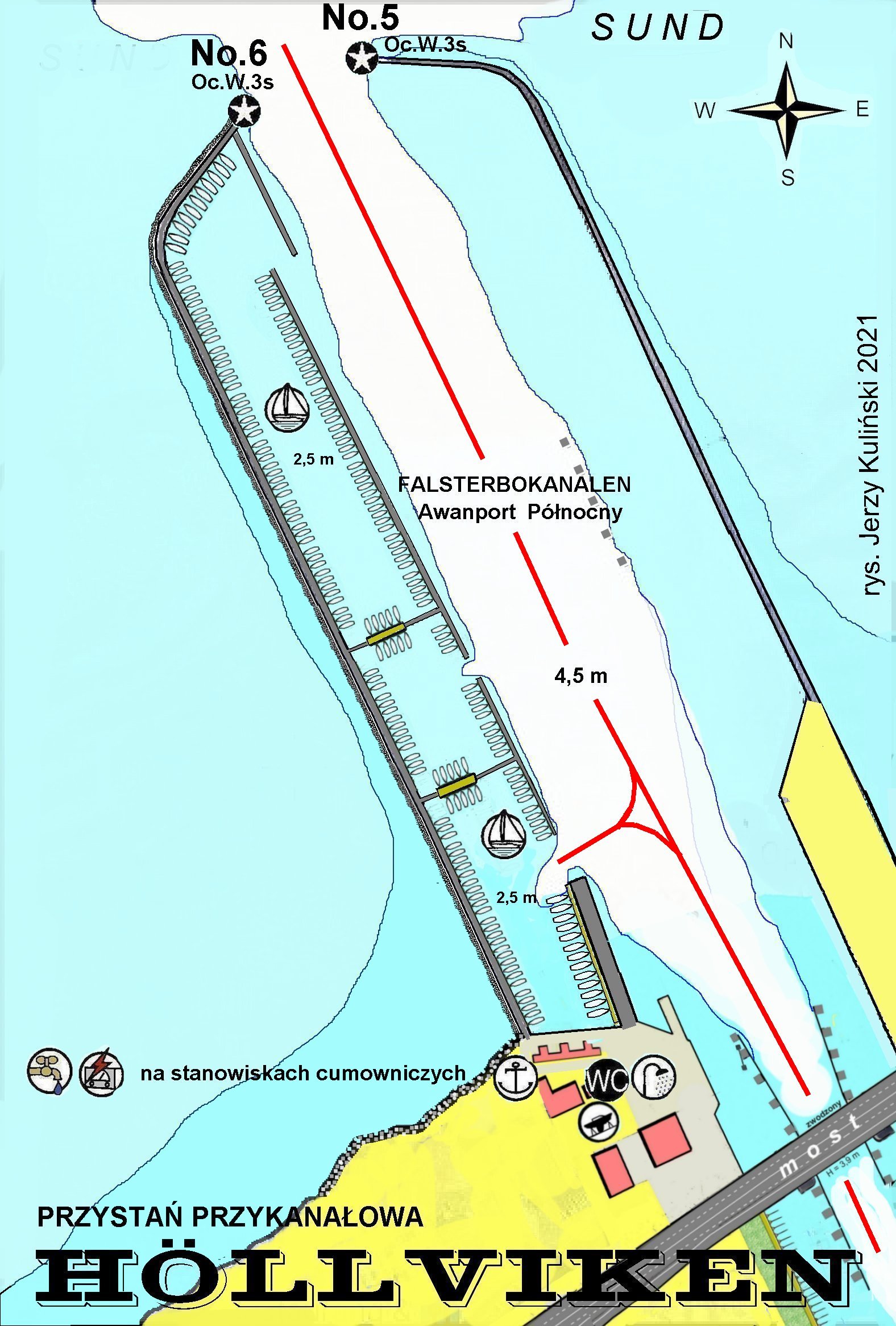 Opis i mapki podejściowe znajdziecie w rozdziale „Kanał Falsterbo”. Dla porządku przypominam tylko, że od północy siedmiomilowym podejściem do kanałowego awanportu prowadzi was krk. 155° .