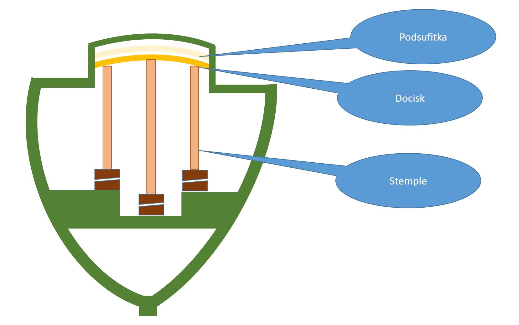 Zakładacie podsufitkę i podpieracie ją dociskiem podpartym stemplami. Zaczynacie od środkowego stempla, potem przechodzicie na boczne – zapewne oparte o boczne koje.