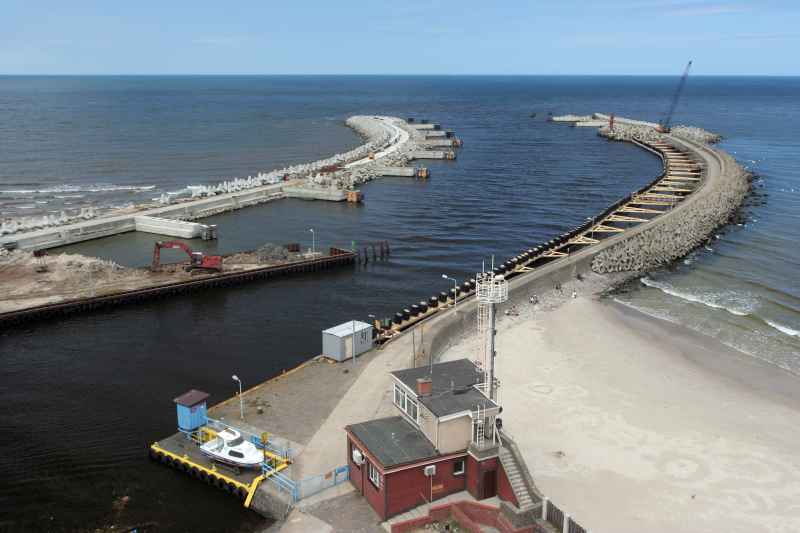 "Bury Kocur", czyli Włodek Ring w komentarzu do newsa "Kołobrzeg nie od macochy" pytał - a co z falochronami? No więc odpowiadam fotografią Wiesława Pawlika. Namówiłem Jana Jałoszyńskiego a on namówił Wiesława na wspinaczkę (latarnia morska) i oto mamy wklejkę do rozdziału "Kołobrzeg" w locyjce "Polskie porty otwartego morza". W tejże książeczce wyraziłem nadzieję, ze przebudowa falochronów skończy się już za rok, najdalej za dwa. Zeszło troche więcej. Roboty budowlane (Hudrobudowa) jeszcze trwają, ale to już kosmetyka. Dziękuję Wiesławowi, dziękuję Janowi.