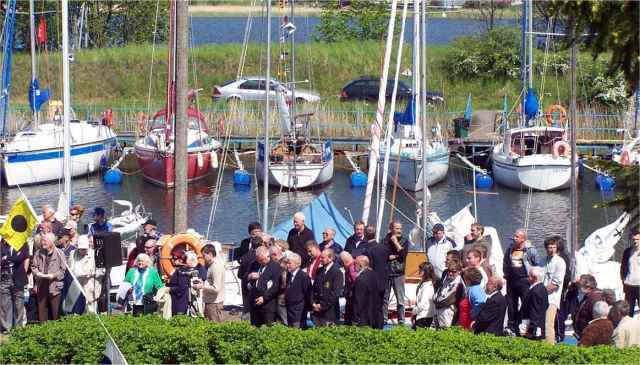 Po pierwszyb biegu Regat przystąpiono do uroczystości. Mowę trzymał Komandor NEPTUNA - Andrzej Chabrowski. Krótko, treściwie przedstawił koleje losu naszego jachtklubu od klubu przyzakładowego, przez międzyzakładowy, dysydencki, do niezależnego-samorządnego. Nie ma co tu sie silić na opisy - kto był, to zobaczył jak NEPTUN obecnie się prezentuje. Jaki jest "qń" - kazdy widzi.