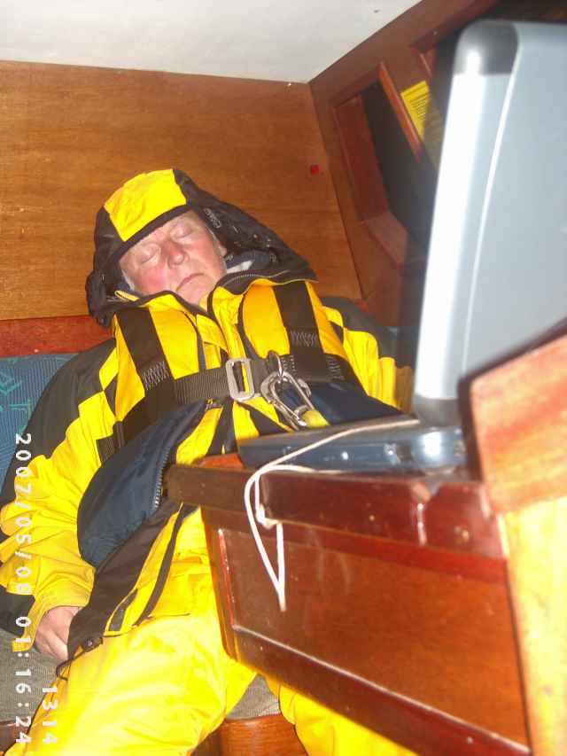 Juz na początku rejsu dostaliśmy wiatr N-W o sile 15 - 17 m /sek czyli dobra 6B i autopilot nie bardzo dawał sobie z tym radę.Krótki odcinek do Skagen pokonywaliśmy dwie doby.Po trzech dniach zawinęliśmy do Thyboron gdzie udało nam się naprawić genuę.Niestety ale jacht ma juz 15 lat i tylko 10000 Mm za sobą ale to tez ma wpływ na jakość ożaglowania.Jednak jacht jest dzielny i dobrze zachowuje sie w trudnych warunkach ( 9 B).Gorzej znoszą to ludzie ,którzy nie zdają sobie sprawy z trudów jakie ich czekają.Nie piszę o rzeczach nieprzyjemnych które zawsze sie zdarzają gdyż rejs uważam za udany a duży sukces odnieśliśmy dzięki dobrej załodze.Andrzej Paszcza i Krzysztof Szoblik z Ustronia to wspaniali żeglarze.Bardzo wytrzymali i odporni na trudy żeglugi.Silni zarówno psychicznie jak i fizycznie.