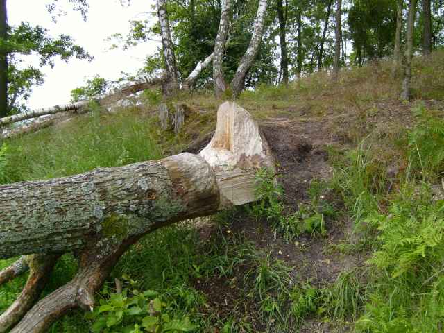 2. Naoglądałem się bobrzych zgryzów w ich ojczyźnie Kanadzie ale na Wdzydzach zaczynają mnie zadziwiać. Ten pokot dorodnych brzóz to nie planowy wyrąb lasu ale własnie wynik zakodowanej w genach potrzeby zwalania drzew. Jednak w tym roku natrafiłem na rekordowy zgryz. Bobry postanowiły uporac się z pniem o średnicy ponad metra i . udało się, jak widać na zdjęciu.