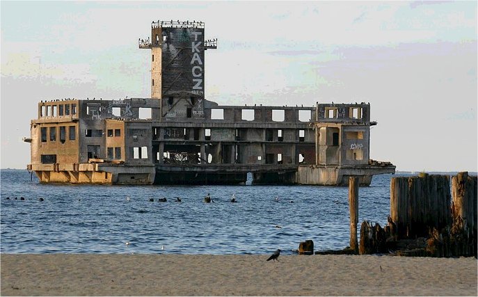 Tak więc jadący do Pucka - uwaga na "zasieki". Być może jakiś złom torpedowy wygrzebano z dna?