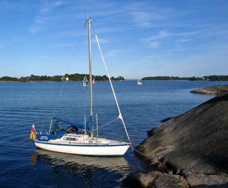 Raz cumowaliśmy „na dziko”, dziobem do skały, przy wysepce Fölsö pomiędzy Ronneby, a Karlshamn. Jedną noc staliśmy na kotwicy – w cieśninie Stege Bugt i jedną na bojce cumowniczej Dansk Sejlunion w cieśninie Guldborgsund W morzu natomiast spędziliśmy tylko cztery noce, z czego trzy w nieco śpiesznej drodze powrotnej wzdłuż polskiego wybrzeża. Rejs na trasie Hel-Hel trwał 22 dni.