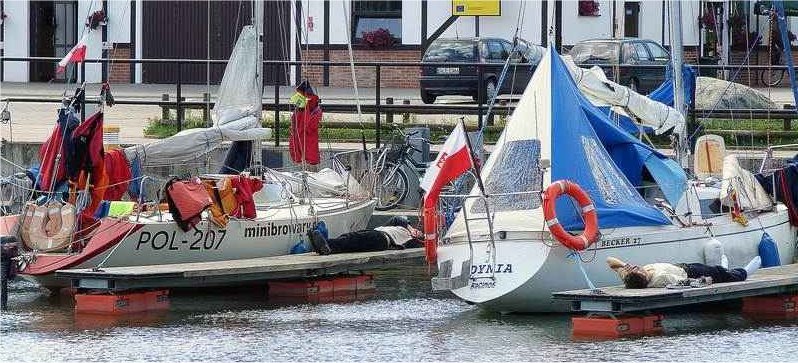 Nigdzie nie możemy znaleźć mapy z drogą do naszej mariny (portu jachtowego). Jak wiele razy podczas tego rejsu musimy zdać się na intuicję. Ale ona nas nie opuszcza. Bez problemów docieramy do miejsca, gdzie przez cały zlot będziemy nocować. Oczywiście na "Bezanie". Wieczorem dojeżdżają znajomi i teraz załoga liczy 11 osób.