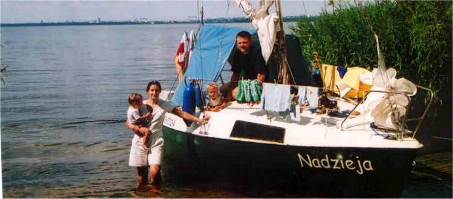 Skiper: Andrzej, załoga: Danusia, Kuba (do Zlotu Żaglowców), dzieci: Marysia, Jaś