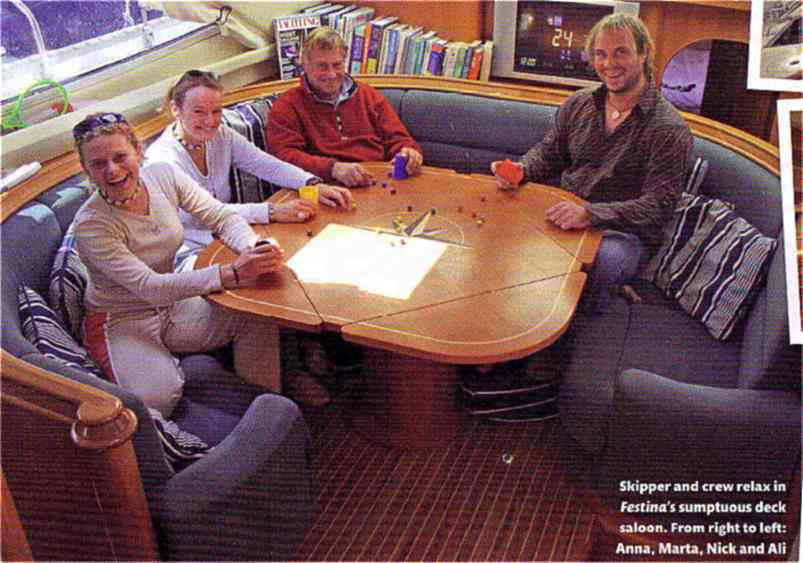 Ostatnie odcinki przepłynęły na luksusowej łódce "Festina Lente" (typ Discovery 53) w towarzystwie skippera Nicka Pochina(67) i załoganta Alistaira Turnera(27).