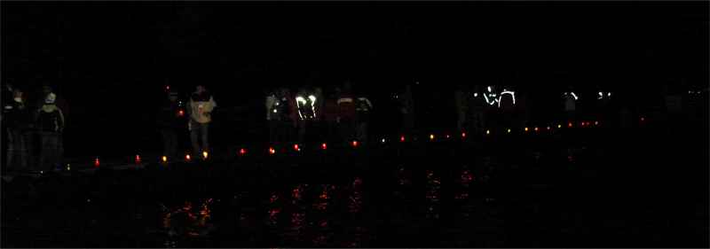 Impreza towarzyska rozpoczęła się w sobotę o godzinie 1900 (na godzine przed meczem piłkarskim z Kazachstanem) od dzielenia.... dzika. Był smaczny, ale nie dałbym głowy, ze to dzik, a nie zwyczajny świntuch. Roch od razu by poznał. Później, kiedy na sali zapanował juz niewyobrażalny tłok zabrał głos Ojciec Organizator, przez najblizszych spoufalonych zwany "Papą". Otwarcie było smutne - minutą ciszy uczczono pamięc naszego Przyjaciela - Jurka Dankowskiego. Później, nocną porą - Jemu i innym żeglarzom, którzy odeszli na wieczną wachtę oddano cześć - zapalając liczne znicze na pomoscie HOM-u.