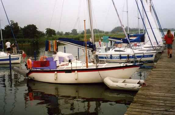Nocujemy w małym porcie jachtowym (bosman w przyczepie-barze, kasuje za postój i podaje kod do toalet), stosunkowo pustym, ale bardzo sympatycznym, a rano wypływamy do Peenemunde. „Z marszu” przechodzimy przez most w Zecherin, potem po drodze mijamy dwie kołobrzeskie DZ-ty i stajemy w Wolgaście w oczekiwaniu na otwarcie mostu. Spotykamy tam mieczowego Tesa 678 ze Szczecina. Wieczorem cumujemy w Peenemunde, gdzie stoją już trzy jachty ze szczecińskiej firmy Skagen (wszystkie trzy to jachty mieczowe: Sasanki 660 i Solina 800). Jeden dzień stoimy w porcie z uwagi na gęstą mgłę i zwiedzamy muzeum rakiet V1 i V2.