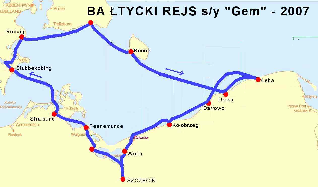 Rejs rozpoczęliśmy 29 lipca w Łebie. To do tamtejszej mariny przywieźliśmy łódkę z Warszawy z zamierzeniem, aby popłynąć do Szczecina na „The Tall Ships Races 2007”, a może i dalej. Dodatkowym bodźcem do rozpoczęcia rejsu w jednym z polskich portów była liberalizacja żeglarstwa morskiego, o której czytaliśmy na grupie dyskusyjnej pl.rec.zeglarstwo i na stronie www.kulinski.gdanskmarinecenter.com.