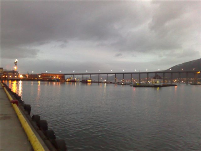 Ale do rzeczy. Idąc Storagate dotrzecie do Langesgate i tu po ok. 200m w prawo kierując się na Rica Ishavnehotel traficie do mariny miejskiej Bardzo blisko stąd wszędzie! A może to być istotne gdyż jak będzie padało to dalej niż do Steakers’a nie będzie wam się chciało chodzić. Kolacja to wydatek ok. 500 NOK/os Z tej mariny praktycznie najłatwiej dostać się na lotnisko. Z kei zawiezie tam was w 15 min. Flybus za 45 NOK/os. W marinie opłata za dobę postoju płatna w parkomacie 200 NOK. Kontakt z kapitanatem na Ch. 12 lub telefonicznie +47 77 66 18 52. W drugiej części tej przystani mieści się większa marinka. Ja subiektywnie nazwałem ją „pod mostem”. Co tam jest i ile kosztuje już mi się nie chciało poznawać i rozpoznał ją jedynie mój obiektyw. Podejście i manewry proste mimo sporego ruchu cruserów i turystowozów. Generalnie szeroko i głęboko. Ze względu jednak na twarde ściany bez mapy się nie wybierajcie! Jeszcze jedna uwaga dotycząca 3 marin zbiorczo. Mimo zaułków i falochronów przy silnym wietrze SW (ok. 6-7B) odczuwalne jest tu nieprzyjemne falowanie. Ach! I oczywiście są tu pływy ale ze względu na to, ze jachty parkują w Y-bomach jest to bez znaczenia. Gdyba była potrzeba wezwać pomoc np. po kontakcie z dnem to statek SAR Gerd Wilhelmsen jest również dostępny pod komórką +47 916 79 632.