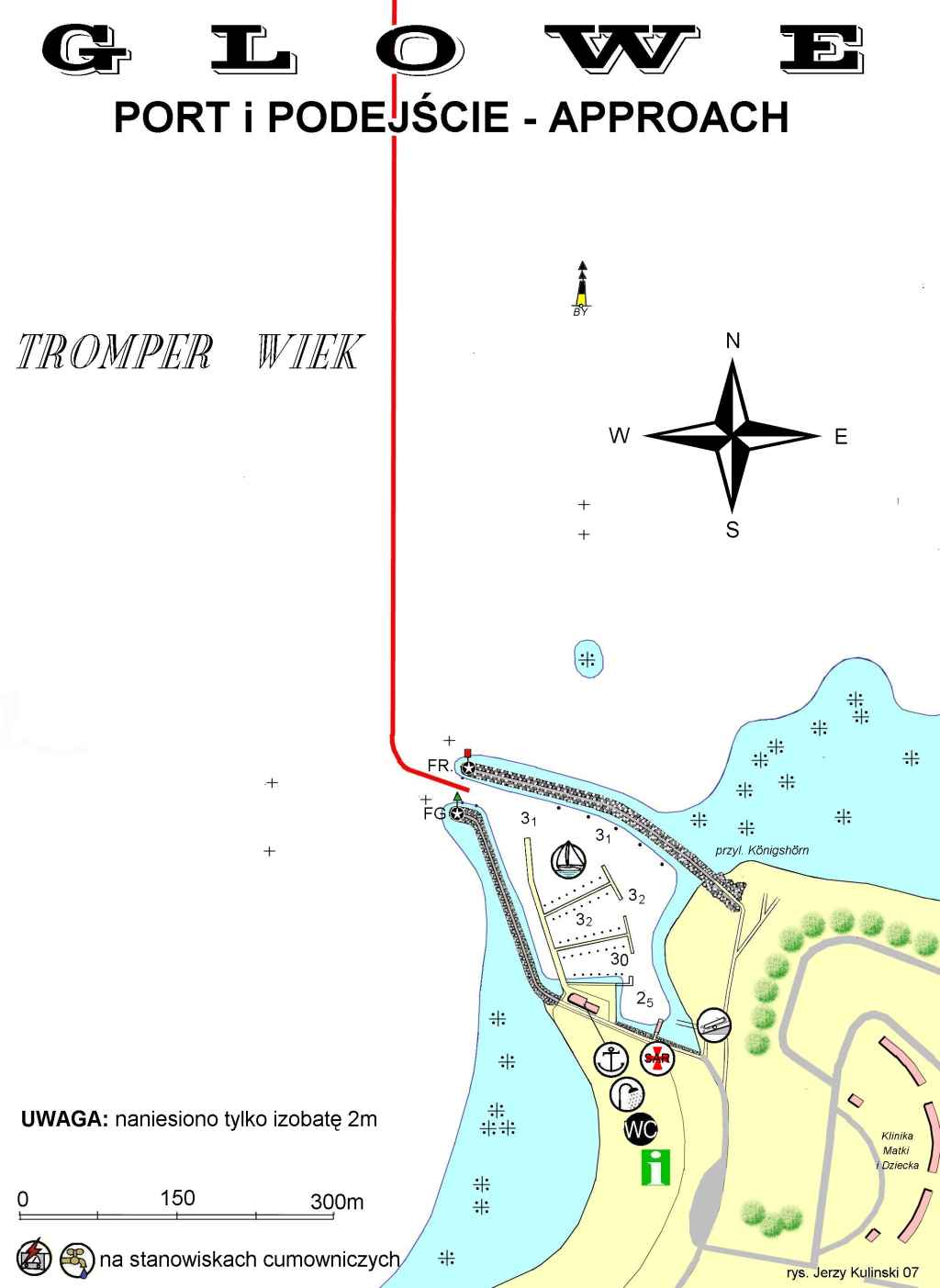 Dodam - tylko w niedoskonałym uzupełnieniu;) i choć nie wiem czy od 2-3 lat się nie zmieniło ale koniecznie zabierzcie tam rower! Plaże przepiekne a i park narodowy w pobliżu. Kiedyś trafiały sie tu w porcie nawet pojedyncze rybaki. Wejście świeciło nocą ale ostrzegali przed głazami na N i S od wejścia. Na wejściu pomocne były od strony N 2 boje czerwone (robiące za krawężnik na podejściu) wystawiane chyba przez portowców, bo takie jakieś nierządowe były ale teraz na fotce ich nie widać. Przy silniejszych wiatrach z W w porcie kartoflisko!! a przy silnych z N lepiej nie próbowac wchodzić. Jeśli nic się nie zmieniło to hafenmajstra można wywołac na Ch. 72. Na niemieckich starych mapach możecie spotkać nazwę Koenigshorn.