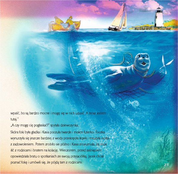 Otóż Maciej jest już w wieku tych, którzy na wyżej wspomnianej lekturze się wychowali. Dobrał sobie "scenografa" - Piotra Łukaszewskiego i oto mamy milutką, dydaktyczną i ciekawą bajkę o morzu, rybakach, ratownikach, rybach, fokach, delfinach, niedźwiedziach polarnych, pingwinach, albatrosach, jachtach, żaglowcach, parowcach, zatopionych skarbach i ... kuszacych żeglarzy syrenach.
