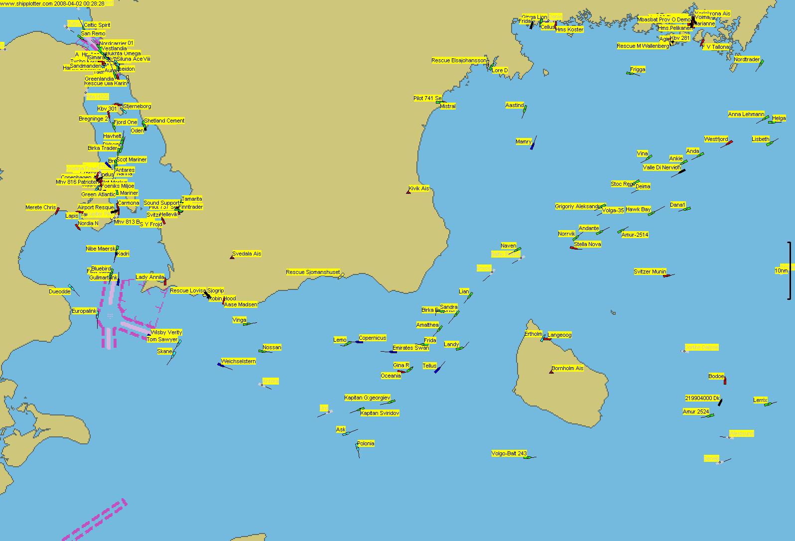 Zobaczymy karawanę statków przelewającą się między Bornholmem i Szwecją a także przez Sund. Odświeżenie tej strony po kilku-kilkudziesieciu minutach pozwoli zauważyć, że te mapki są "żywe" – statki przesuwają się, ciągnąc za sobą zgrabne kilwaterki: mamy wgląd w aktualną sytuację na morzu.