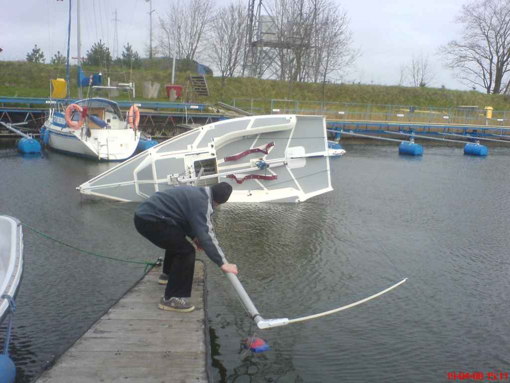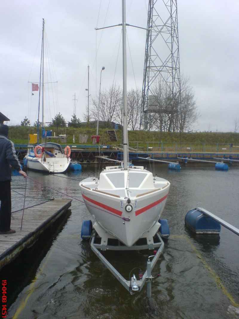 Dopasowano takielunek stały, doprowadzono jacht do trymu pomiarowego wg przepisów klasy "ŻAGLE 500" zważono legalizowanym dynamometrem i dobalastowano do masy 300,5 kg (minimalna masa to 300 kg).Po wodowaniu wykonano test stateczności przy przechyle 90 st. Przy zawieszonym odważniku pomiarowym o masie 10 kg, na dolnej krawędzi górnej opaski pomiarowej P jacht zdecydowanie "wstawał" czym spełnił wymogi przepisów klasy. Sprawdzono wszystkie wymiary wymagane przepisami, omierzono żagle, skontrolowano wyposażenie obowiązkowe.