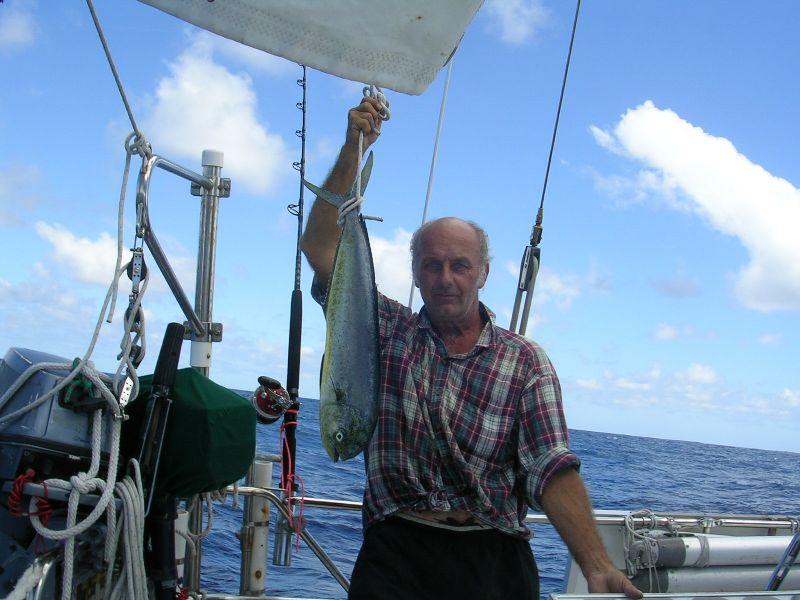 Wyplywamy na Pacyfik , 28 dni i nic tylko woda (jeden japonski statek rybacki) zadnych innych sladow cywilizacji nawet brak samolotow, wiatry slabe 10 do 15 Ktn a pare dni nawet okolo 5 Ktn ale fale duze z poludnia do 12 ft , zegluga super ale chwiejba daje sie we znaki , nie chorujemy ani troche jest super.