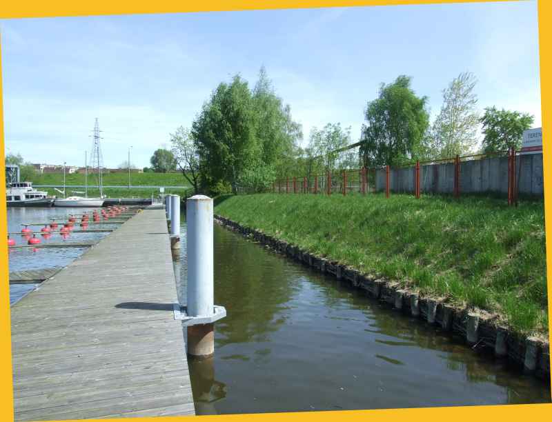 NADBRZEŻE - Basen pogłębiono, linie brzegowe wyprostowano i umocniono. Wojsko siedzi tu po staremu, pomost zmurszał i rozpadł się. W narożu południowo-zachodnim powstaje przystań filialna elbląskiego jachtklubu "Wodnik". Teren już splantowano, ogrodzono, uzbrojono instalacyjnie i zbudowano pomost.