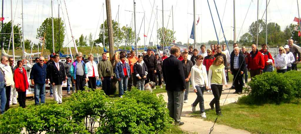 W sobotę i niedzielę w ramach neptunowych uroczystości otwarcia sezonu 2008 odbyły się regaty, tu zwane często "gonitwami". Na uroczystosci przybyli Prezes i Sekretarz Gdańskiej Federacji żeglarskiej - Jan Talik i Andrzej Szrubkowski. Z honorami i żartami Komandor Andrzej Chabrowski powitał tęgiego przywódcę SIZ - naszego ulubionego Jurmaka, czyli Jerzego Makiełę. Można było zobaczyć i porozmawiać z "mityczną postacią", czyli Prezesem SAJ - Grzegorzem Kuchta. Po drugim biegu (sobota) podniesiono banderę, a dopiero później przystąpiono do ucztowania. Skipper s/y "Geronimo" Stanisław Reszel nakładał kiełbaski lub wołowinke z grilla. Była też kaszanka, sałatki warzywne i bułgarskie wino. Biesiadę uświetnił koncert szantowy w wykonaniu Kamila Badziocha. Po raz pierwszy od długiego czasu słuchałem melodyjnego spiewu i bez ogłupiających decybeli. Kamila występ mi się podobał.