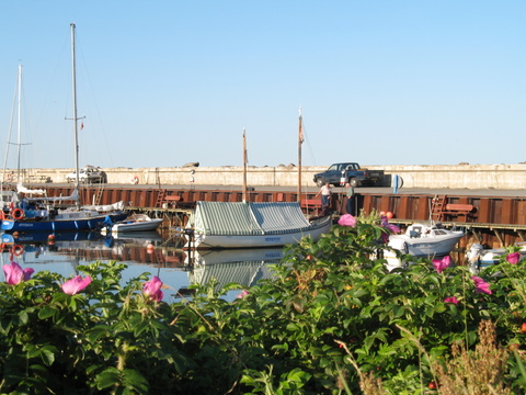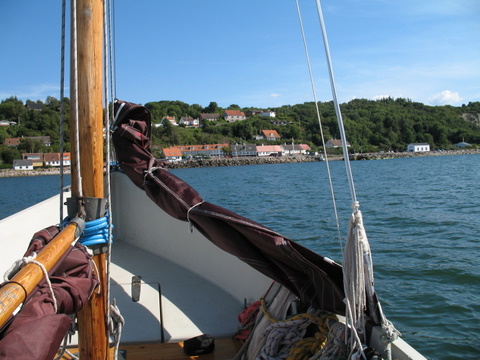 Co ważne, średnia wieku załogi oscylowała w pobliżu 65. Wiała "piątka" ENE wzbudzając nieprzyjemną falę. Początkowo szliśmy tylko na foku i zarefowanym bezanie, później, gdy nasza dzielność morska odpowiednio wzrosła, postawiliśmy wszystkie żagle. Do Ronne weszliśmy po 18 godzinach żeglugi. Odpoczywamy i zatrzymujemy się tutaj na noc. Naszym zapleczem socjalnym są improwizowany na brzegu kambuz i koje z dmuchanych materacy rozkładane pod specjalnie uszytym namiotem.