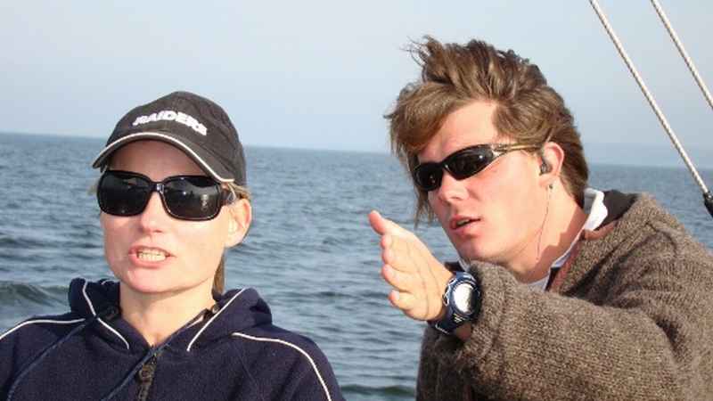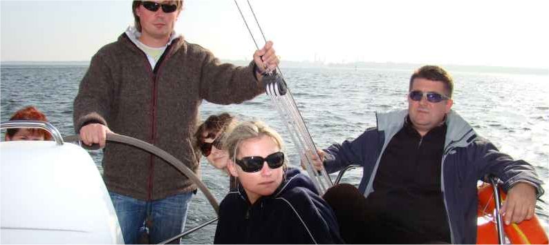 Ale przejdę do konkretów. Przygoda z Tadeuszem Duchem to nie tylko świetna zabawa. To także ciężka praca. Nie mam tu na myśli zajęć na morzu, manewrów, zwrotów, akcji typu: „człowiek za burtą”, bo te są prawdziwą frajdą. Chodzi tu o naukę przez duże N - zajęcia teoretyczne, wykłady i ćwiczenia. Tadek wyłożył w ciągu tygodnia cały podręcznik „Żeglarz i sternik jachtowy”. Zrobił to w tak rewelacyjny sposób, że do chwili obecnej zastanawiam się, jak taka dyletantka jak ja mogła zarejestrować wszystkie te informacje, o których nawet nie śniła wcześniej. Cierpliwość wykładowcy zrobiła swoje. Ha ha, potrafił on metodą łopatologiczną powtarzać po kilka razy niezrozumiały dla nas materiał i co najważniejsze : ZDĄŻYŁ!
