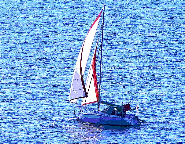 Po noclegu na kotwicy płynę dalej do mariny w Seedorf [10 euro najdrożej w Niemczech] tam stoję 2 doby bo bosman podaje prognozę do 8B.Poznaję czeską załogę jachtu JOY ,który leczył rany po zderzeniu na morzu z innym jachtem. Kapitan mówi, że tamten szedł pod autopilotem a on nie widział go zza dużej genuy. Zwiedzam na rowerze południową Rugię, pogoda cały czas niepewna, postanawiam wracać do domu. Dopływam do Zicker,. na kotwicy stoję tu ponad 2 doby ,to już za długo, czuję się osamotniony. Sam na wodzie, a w radiu tylko Program I i Radio Maryja , słucham wszystkiego aby zabić czas oczekiwania na sprzyjające wiatry. Ruszam rano o 05 30 ale na otwartej wodzie przechodzą szkwały. Kiedy stawiam grota żagiel pęka na 50 cm muszę go naprawić, wiatr wieje do 6B jedyny port to Greifswalder Oie.Z duszą na ramieniu wchodzę awaryjnie do zamkniętego portu, staję przy kei i zaczynam naprawiać grota. Niemcy są wyrozumiali nie robią trudności .Spotkany na kei Otton jest bardzo przyjacielski, zapraszają z żona na kawę i ciastka. Razem zwiedzamy wyspę. Stoję do rana bo wieję 7B. Razem z Ottonem wychodzimy z portu .On do Świnoujścia ja w kierunku Gdańska bo mam cichą nadzieję, że dopłynę tam bezpośrednio ,ale po dobie płynięcia na wysokości Darłowa prognoza jest niekorzystna, rozbudowuje się wyż i mają przyjść wschodnie wiatry. Wpływam do Ustki .