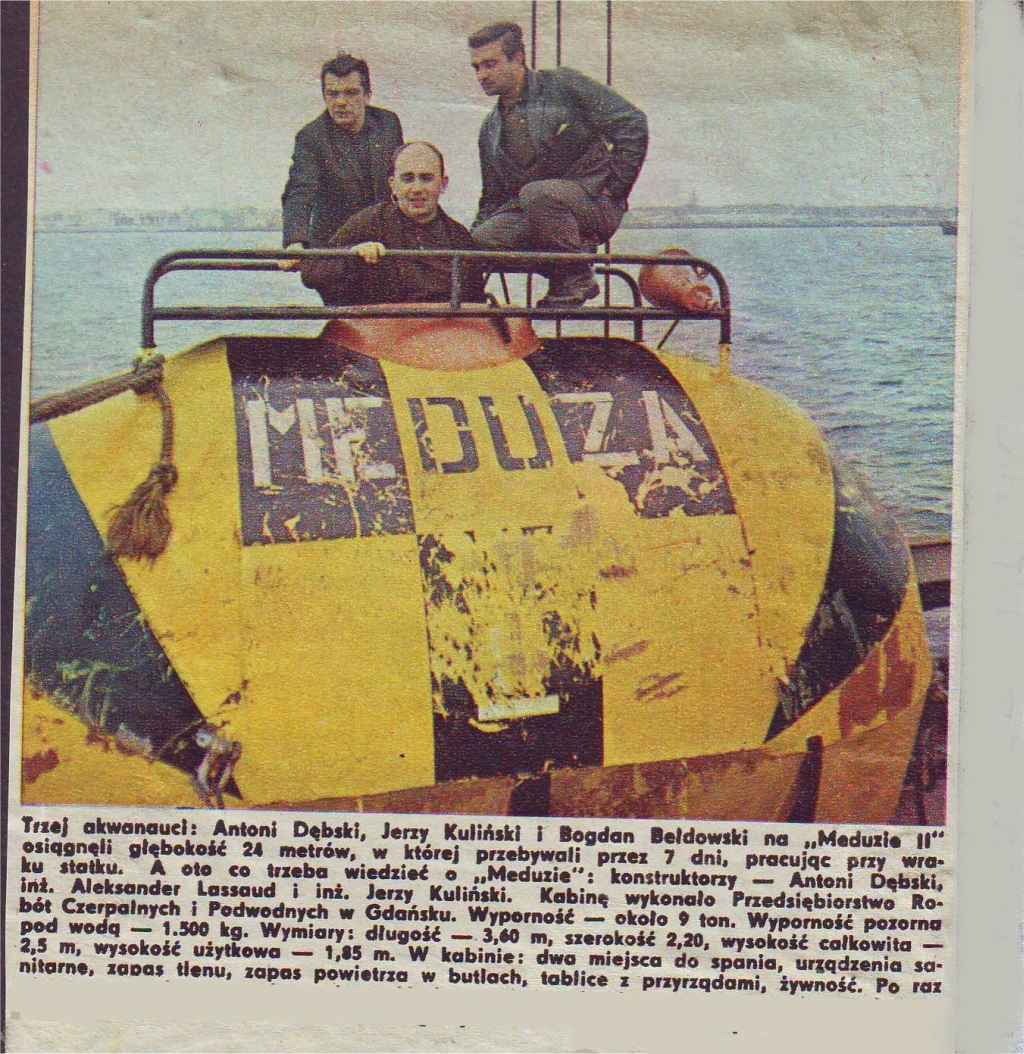 Siłami i środkami Przedsiębiorstwa Robót Czerpalnych i Podwodnych, Polskiego Ratownictwa Okrętowego, Gdańskiego Klubu Płetwonrków "Posejdon", przy współpracy klubów płetwonurków "Tryton" z Łodzi i "Meduza" z Gdyni przeprowadzono pierwszy polski podmorski eksperyment batynautyczny pod nazwą "Operacja MEDUZA II". Zaintersowanie medów było niesamowite. Ekipy WFD (Andrzej Ziemiński), TV1 (Stefan Truszczyński) i TV Gdańsk (Jurek Ringer i Wojtek Jankowski) na miejscu. Fotoreporterzy Janusz Uklejewski, Zygmuś "Kuba" Grabowiecki, Stefan Figlarowicz, Janusz Rydzewski). Przedsięwzięciu kibicowali między innymi dziennikarze Grażyna Murawska, Wojciech Święcicki i inni.