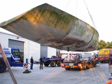 być może tak będzie nazywał się ten jacht, kiedy będzie gotów do wodowania. Teraz jest gotów do transportu i do myjni.